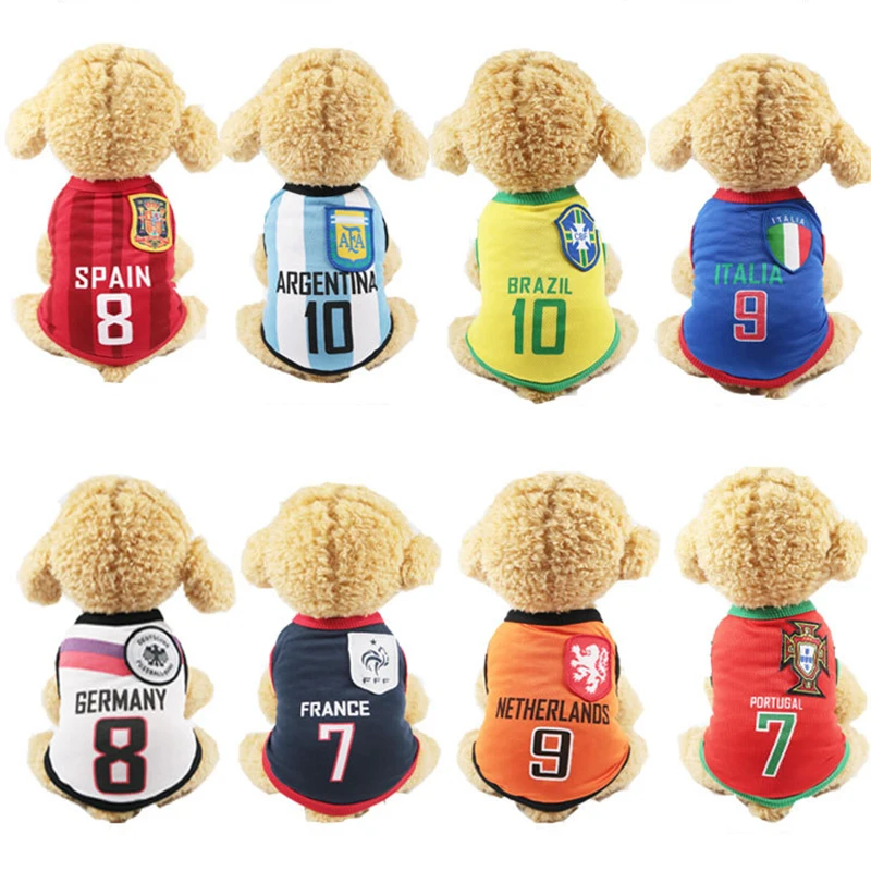 Dog Summer Sport Vest Shirt Pet Cat T-shirt Brazil France Portugal Football Soccer Jersey Clothes for Small Dogs Chihuahua GY25